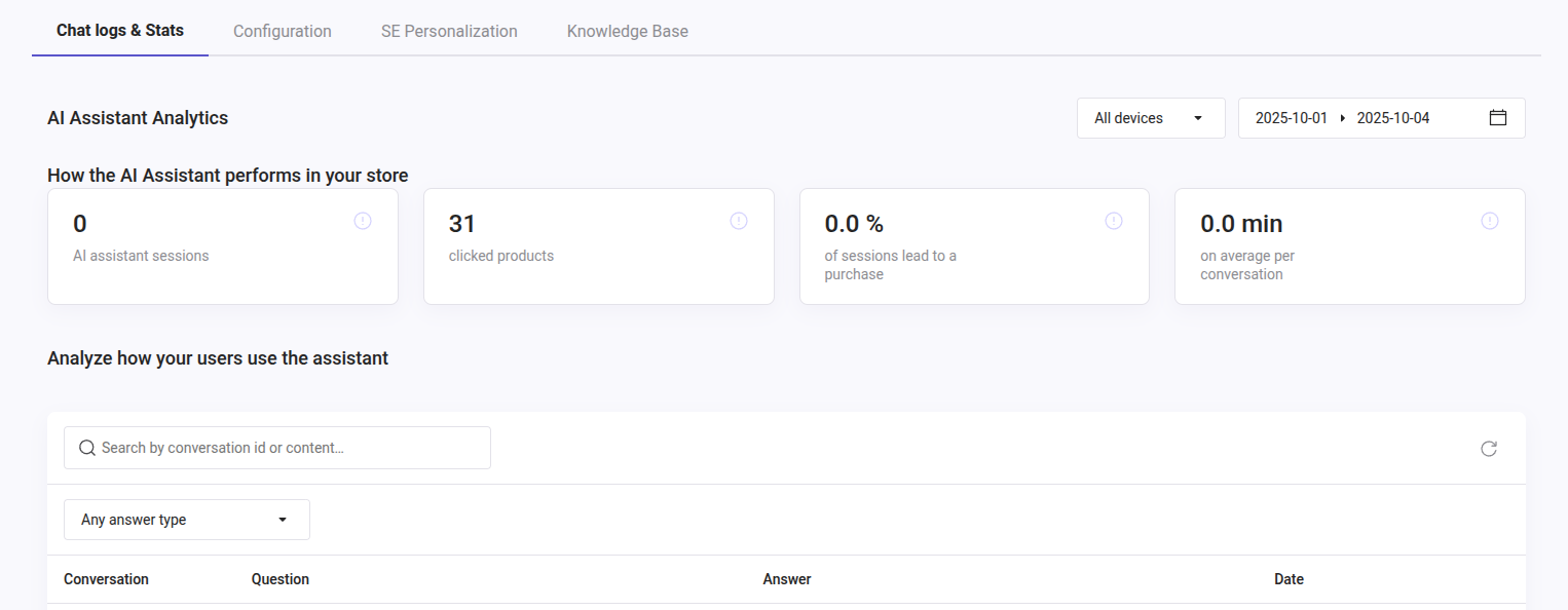 How the AI Assistant performs in your store - Stats