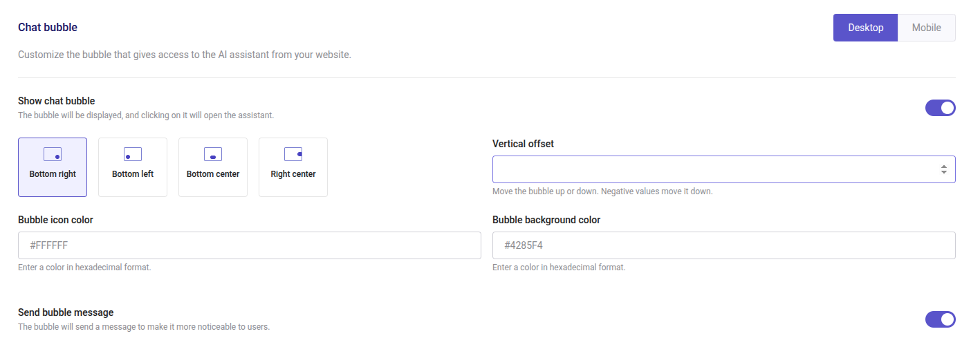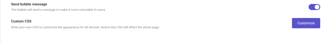 The bubble will send a message to make it more noticeable to users. If enabled, customers will be directly addressed on your web by the assistant.