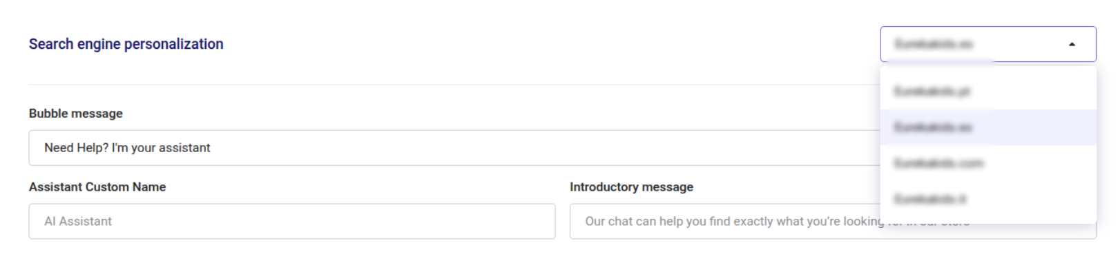 Customize the messages shown on and by your AI Assistant. And, you can switch the Search Engine using the option on the right side of the Custom Text section: :