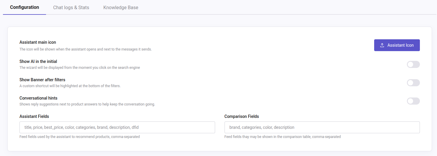 However, if the box is empty, we will use all fields in your data feed. The purpose of this is to add fields when you need to control what you want the AI assistant to read instead.