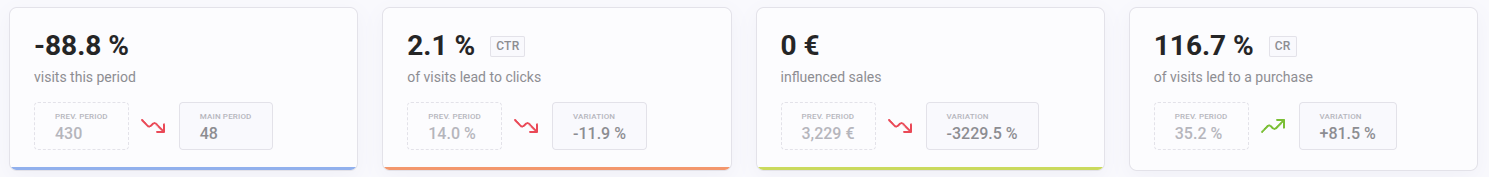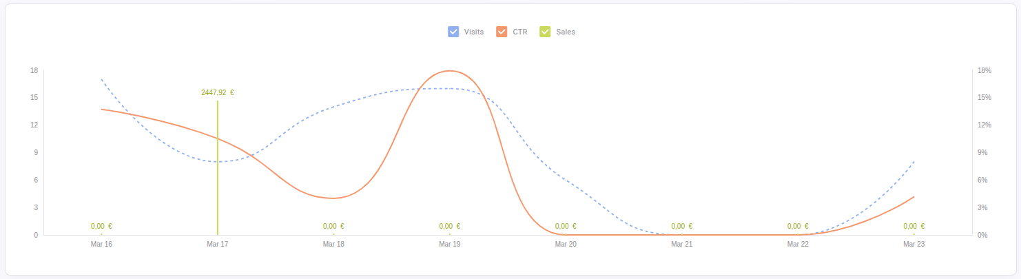 Available metrics on the chart upon selection: Visits (when the carousel load, then a visit is registered), CTR and Sales.
