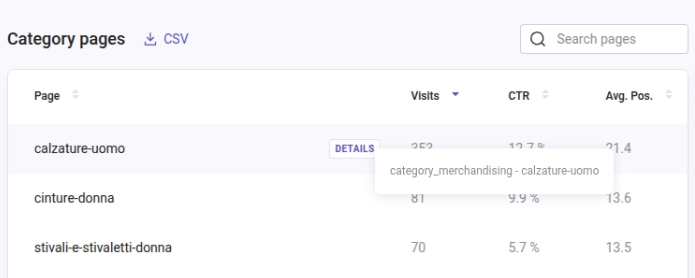 When downloading the Category pages CSV, you will have access to: